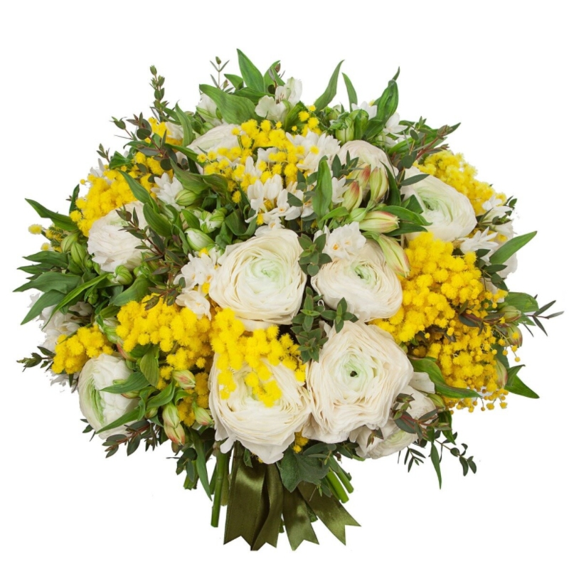 Букет из ранункулюсов с мимозой
